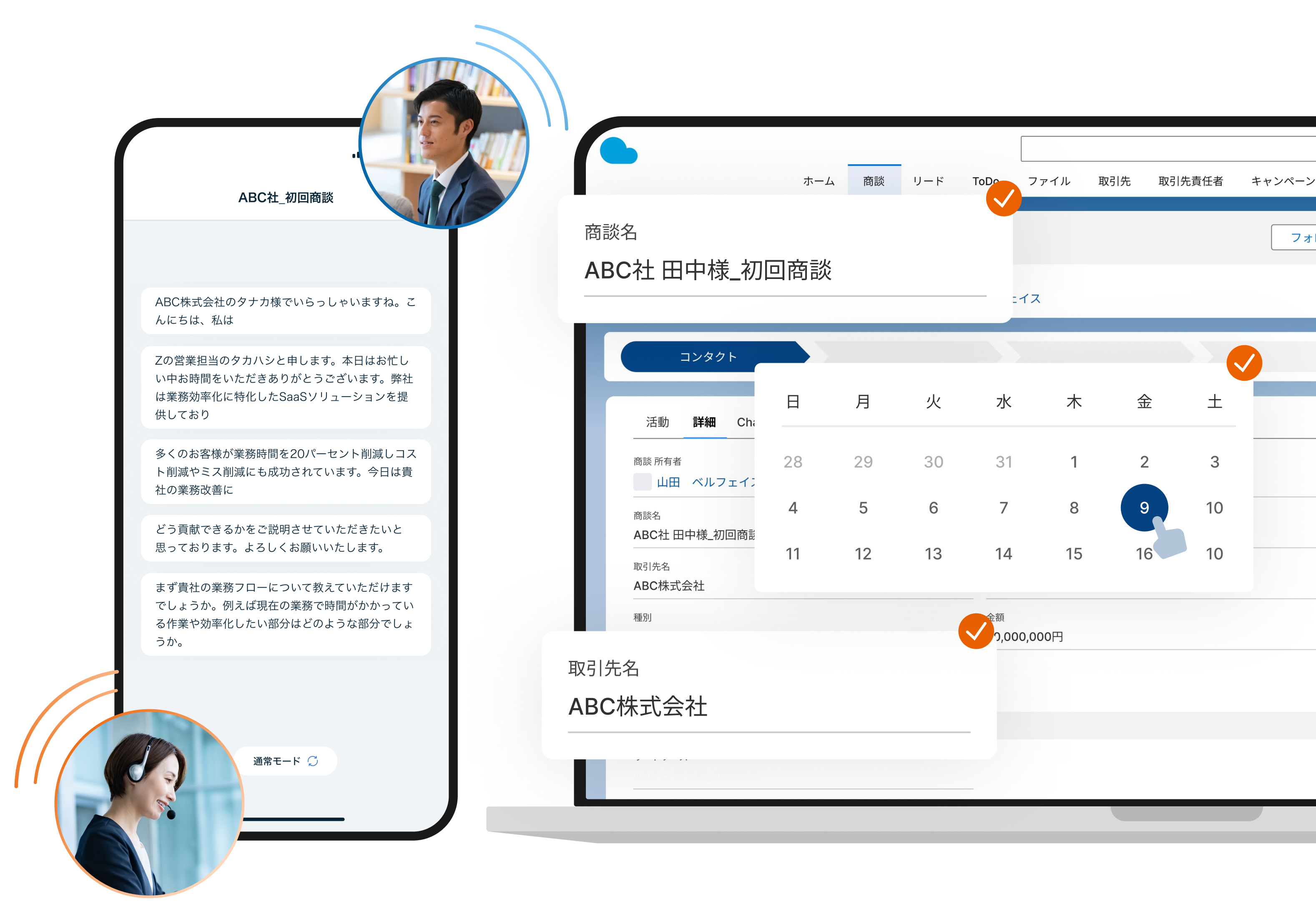 商談の会話データからSalesforceに入力したい項目をAIが自動抽出することで、営業担当者の工数削減・案件管理の精度向上を実現します。