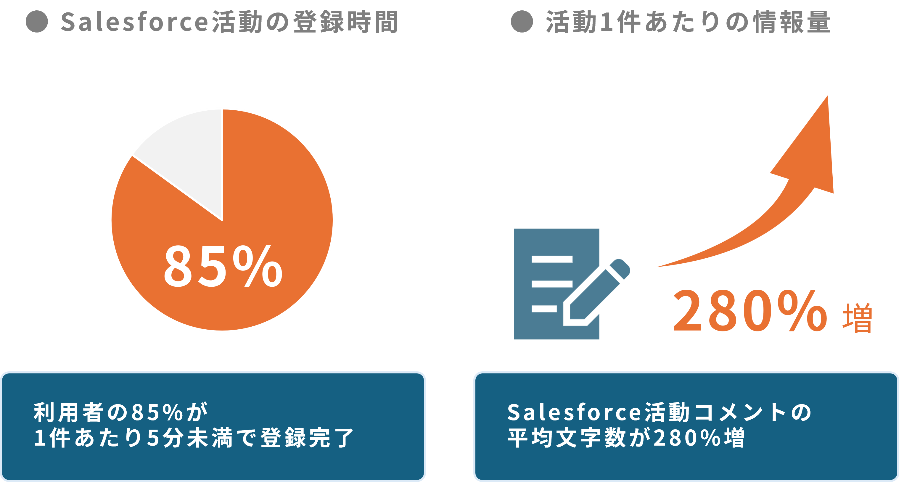 - 「Salesforce活動入力が短時間で済むようになり、資料作成など他の業務に時間を割ける」